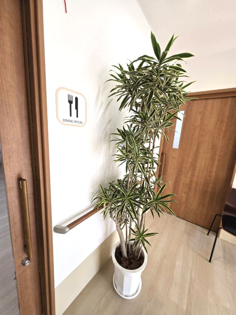 私たち「ななつぼし平和」では、館内のあちこちに観葉植物や生け花を飾っています。冬の長い札幌では、外で緑を見る機会が少なくなりますが、だからこそ、室内に植物の彩りがあることが、心の潤いにつながると感じています。