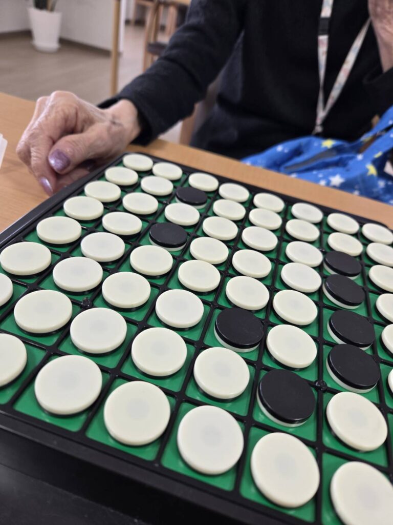今日は、入居者さまとスタッフで “本気のオセロ対決”を開催しました。