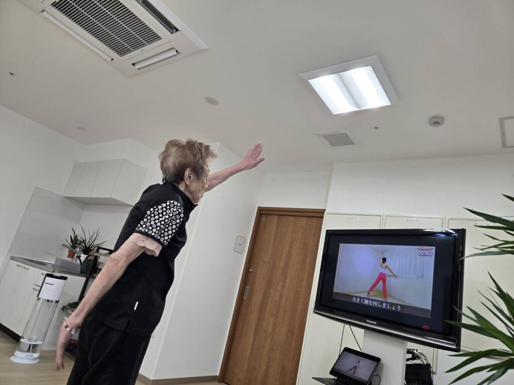 御年90歳。 きょうも元気にエアロビックス開始です!