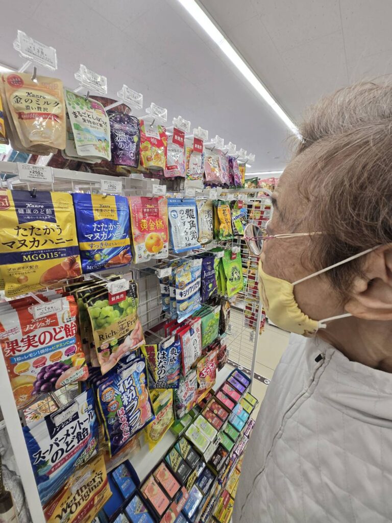 散歩の途中、たまたま通りかかったコンビニ。 「寄ってみたい」とAさんがおっしゃるのでお供すると、最終的にはお菓子をおねだりされてしまいました。