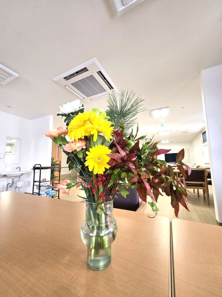 居室は、心地よさと安心感を大切に整えられ、 ご自身のペースで過ごせる空間となっています。 お食事は、栄養だけでなく「楽しみ」や「季節の彩り」も大切に。 旬の味わいや、懐かしい家庭の味が、毎日の食卓を彩ります。また、ふとした会話や笑顔のやりとり、 小さな交流の積み重ねが、心をあたためてくれます。 一人ひとりの「こうありたい」という想いに寄り添いながら、 その人らしい日々が、ここで静かに、やさしく流れていきます。